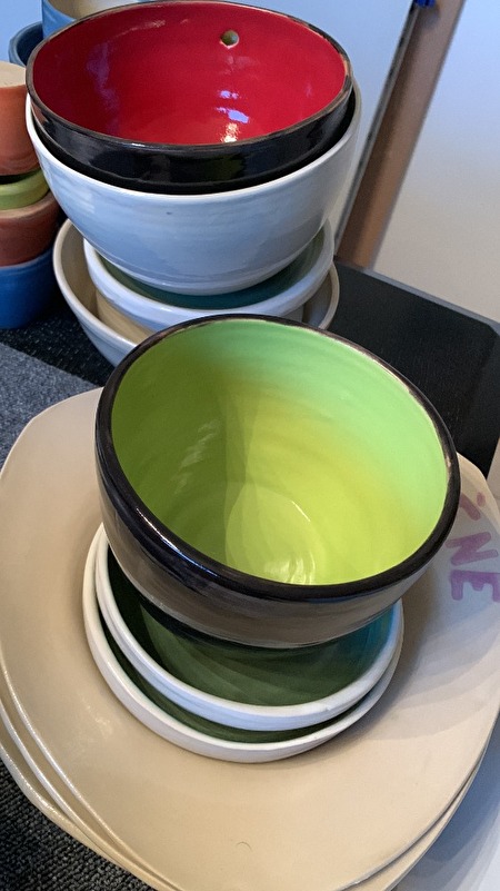 Klei, draai- en afdraaitools, engobes en glazuren zijn ter beschikking in mijn atelier.