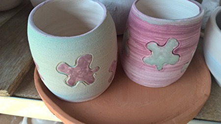 Deze workshop bestaat uit 4 lessen draaiplezier. Ook hier komen de verschillende fasen van het pottendraaien aan bod : kneden, centreren, optrekken, afwerken en afdraaien. We draaien 2 keer, de derde les verfraaien we de vorm en draaien we de potjes af. En de laatste les is een glazuurles.