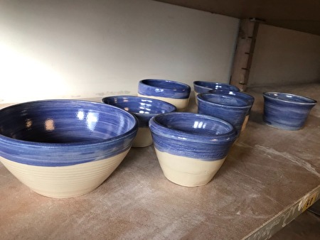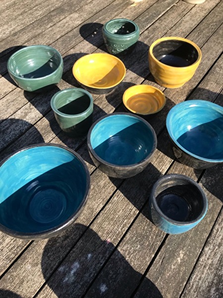 Klei, draai- en afdraaitools, engobes en glazuren zijn ter beschikking in mijn atelier.