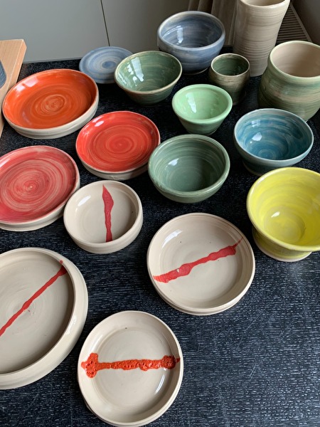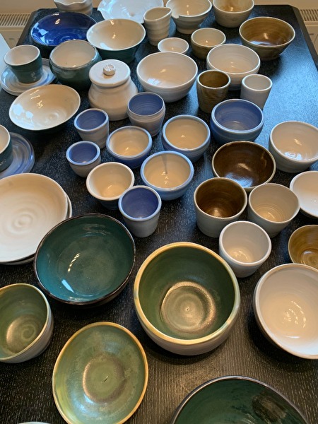 Klei, draai- en afdraaitools, engobes en glazuren zijn ter beschikking in mijn atelier.